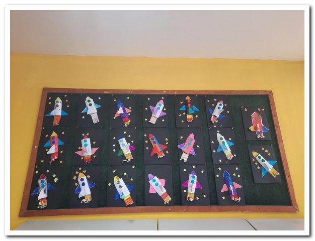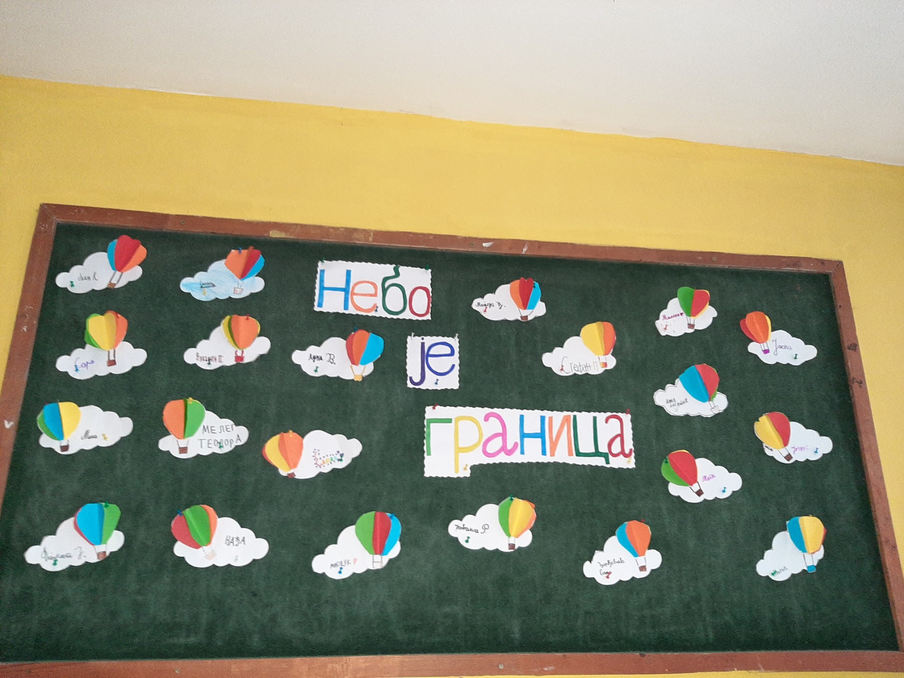 Небо је граница За наше прваке у боравку небо је граница када узмемо у обзир њихову креативност и маштовитост којима нас свакодневно изненађују. Прваци уживају у цртању, бојању, прављењу паноа, изради честитки чиме редовно обележавају најважније културне догађаје.