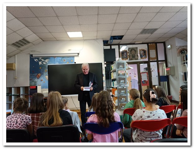 Разгледница из школске библиотекеИ ове школске године направили смо “Разгледницу из школске библиотеке”. Ученици 4/4 уживали су у фотографисању са својим омиљеним књигама у школској библиотеци.