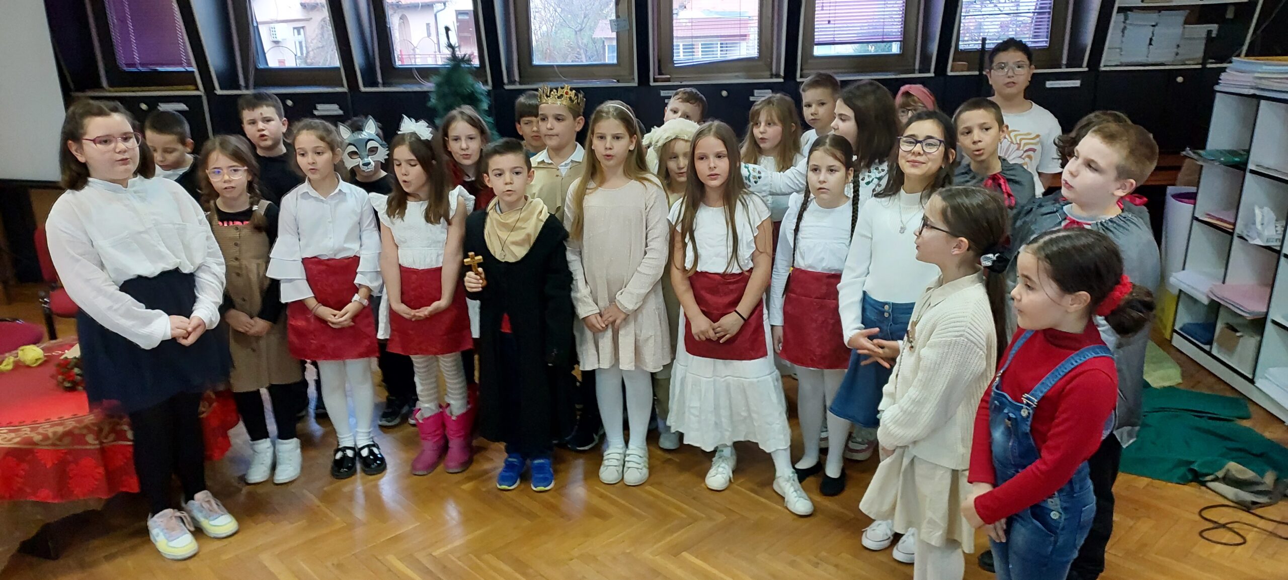 Народна традиција Ђаци прваци воле да иду на секцију Народна традиција. Кроз приче, песме, глуму, играње кола радо уче о прошлости. На тај начин и чувају од заборава наше вредности. У радости су прославили свој први заједнички Божић у школи. Извели су приредбу која дочарава…