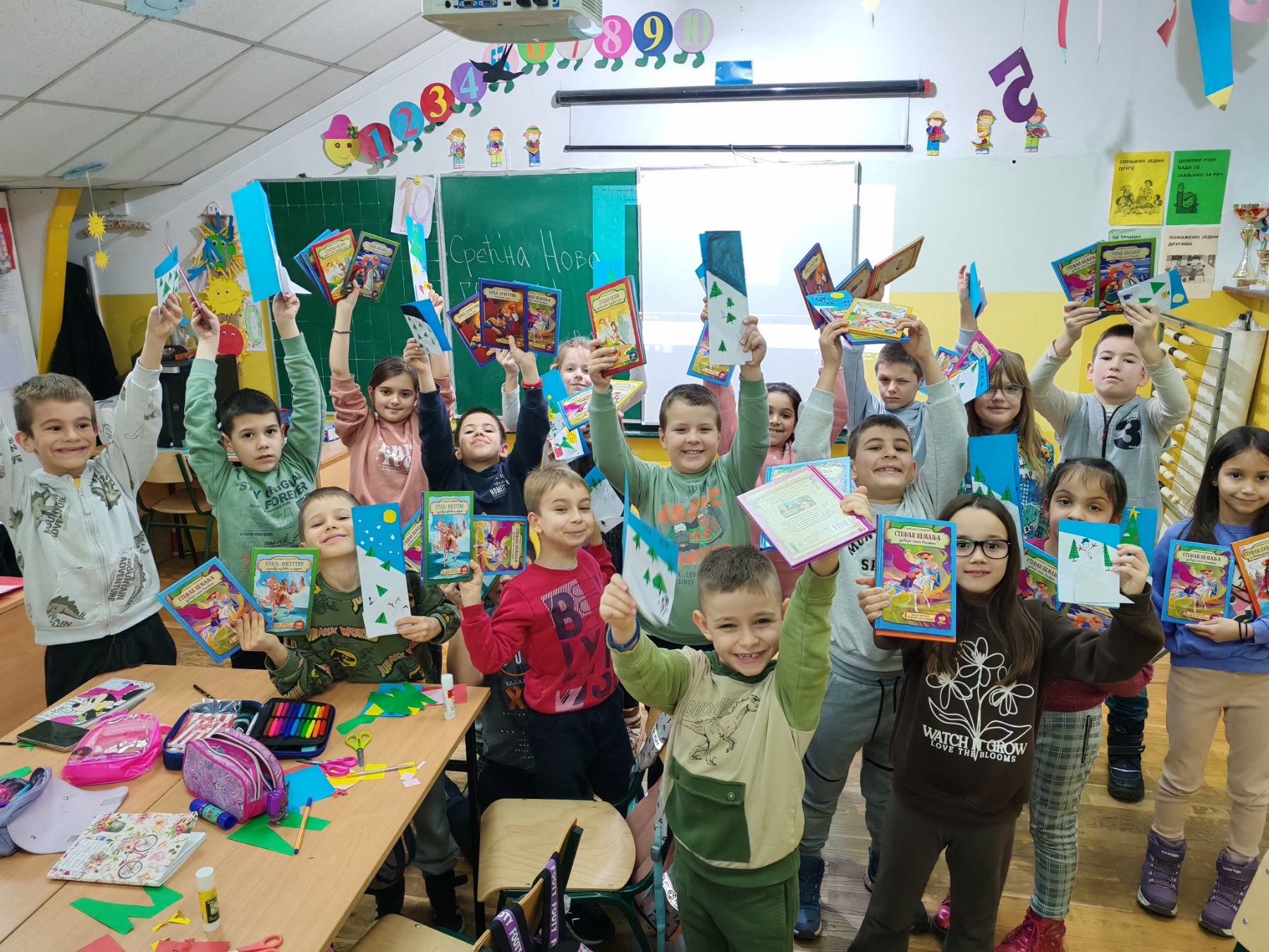 Лепо писање и читалачки клубДругари из 2/1 правили су новогодишње честитке, а онда је стигло изненађење – књиге Слободана Станишића из едиције “Деца читају српску…