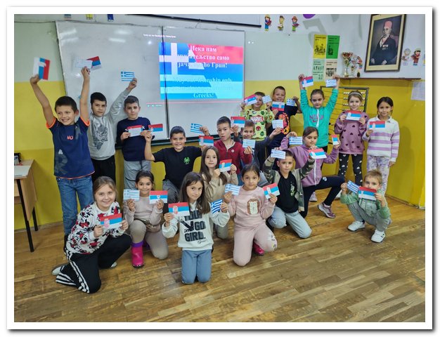 Послали су нам причу о грчкој застави и замолили нас да им напишемо причу о српској застави. То се сјајно уклопило у наш постојећи рад и план. Ученици 2/1 су на интердисциплинарном часу (српски језик, свет око нас, ликовна култура, музичка култура и дигитални свет) чули причу о грчкој застави, проширили знање о српској застави, истраживали о химнама…